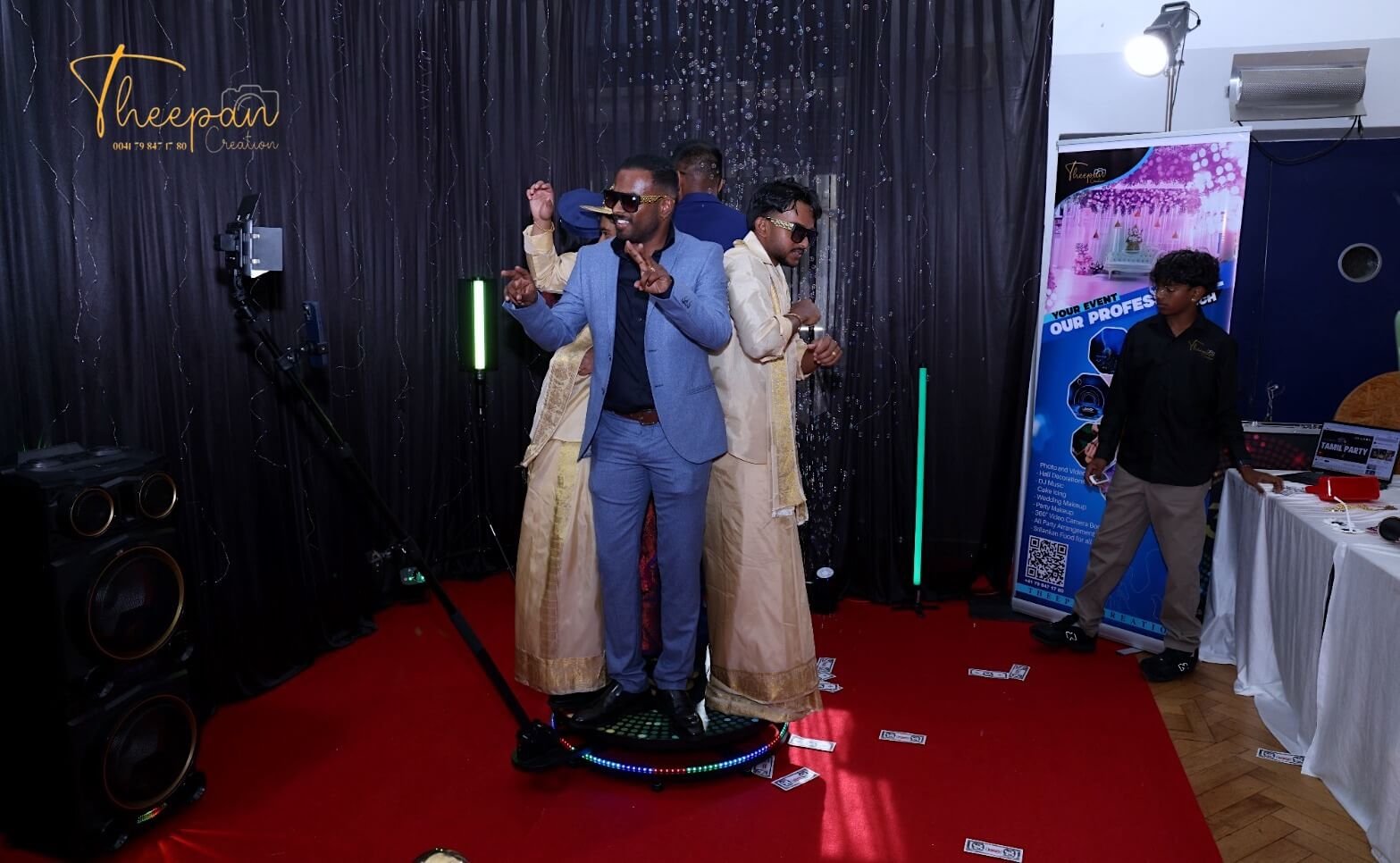 TheepanCreation provides immersive 360° video booth services across Switzerland, adding a modern and interactive touch to weddings, corporate functions, and grand celebrations.